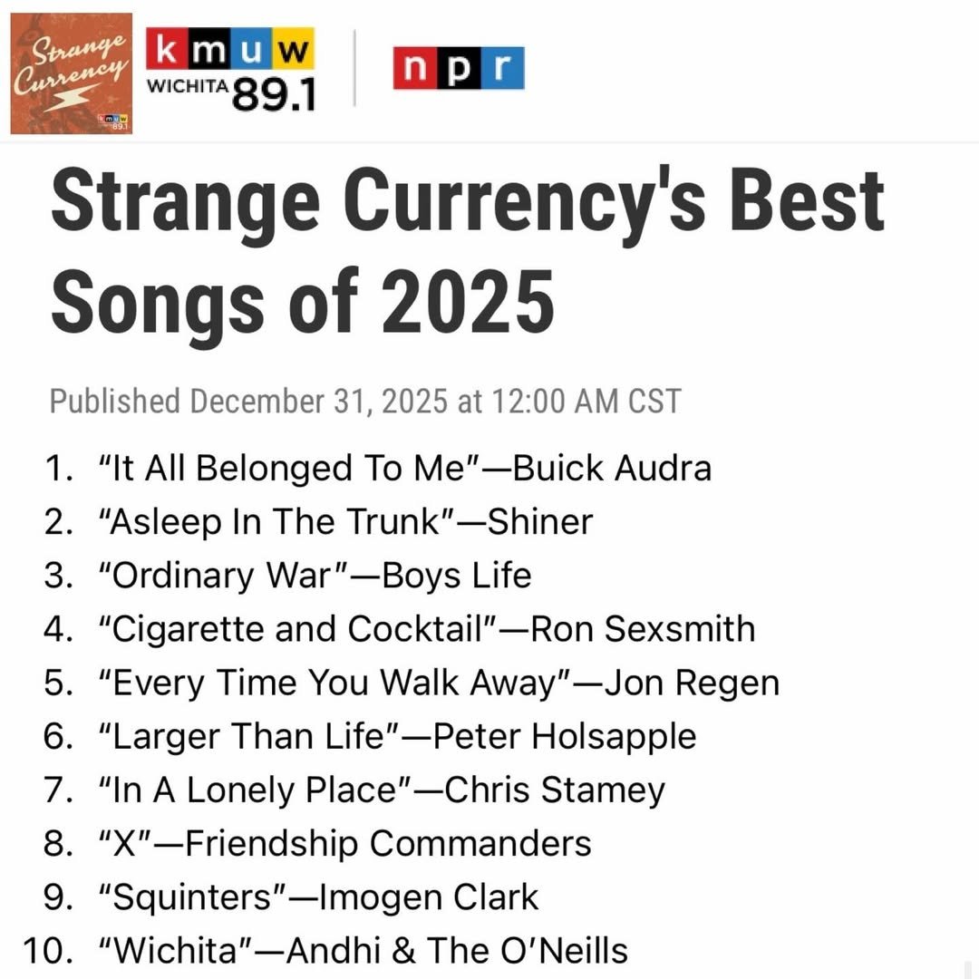 Just seeing that my new single "Every Time You Walk Away" was named one of the Best Songs of 2025 by Strange Currency, on NPR affiliate KMUW. Big thanks to host Jedd Beaudoin for calling it as he hears it!